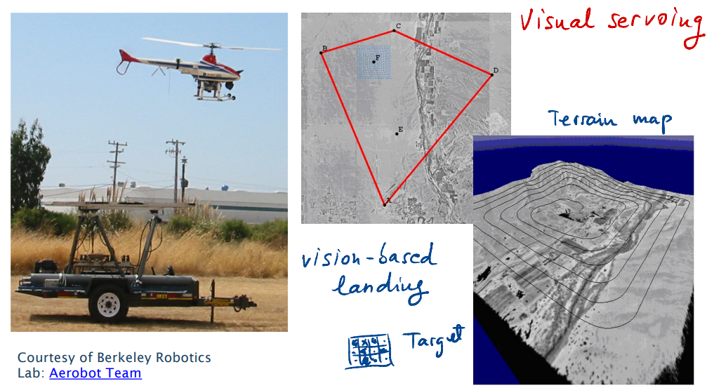 https://ptolemy.berkeley.edu/projects/robotics/bear/current_research.html - 비주얼 서보잉, 지도를 탐색해서 착륙하기 최적의 장소 찾기, 고도 추정 및 장애물 회피기능, 시각 기반 착륙 기능 등에 비전 시스템이 사용된다.