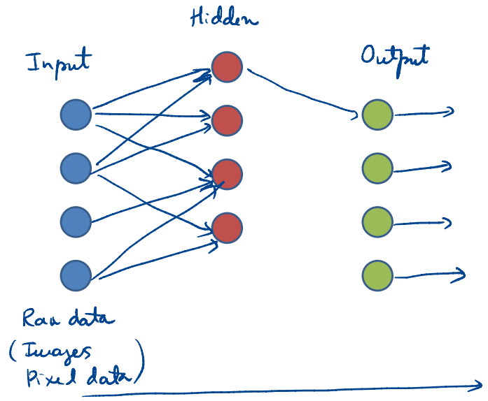 input layer : 미가공 데이터, 이미지로부터 얻은 정보(픽셀 데이터)
