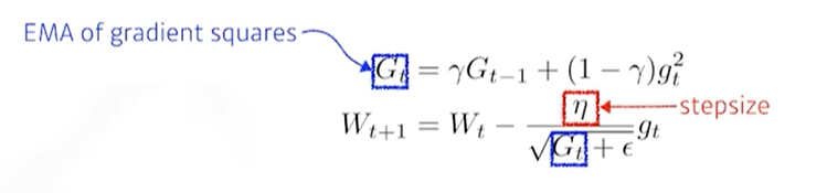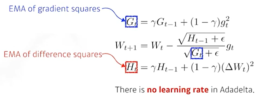 - accumulation window를 제한하므로써, AdaGrad의 monotonically decreasing the learning rate을 줄이기 위한 방법이다.