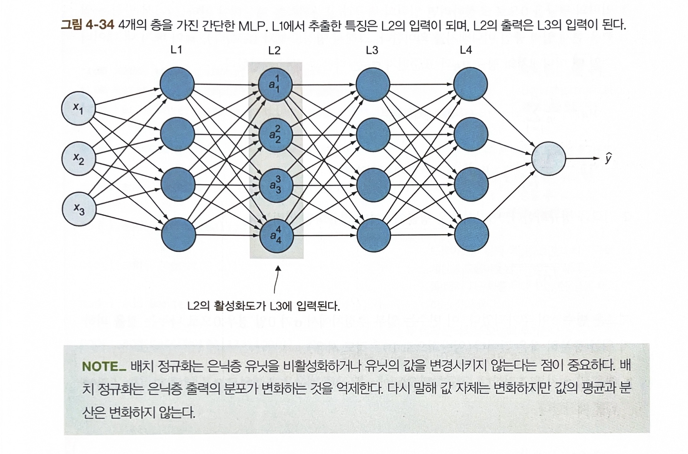 4개의 층을 가진 MLP를 예로 들면, L3의 관점에서 L1의 파라미터(w,b) 변화에 의해 L3층의 입력에 해당하는 L2층의 출력값들이 변화하고 있다. 즉, 은닉층 내부에서 공변량 시프트가 발생하는 것이다.