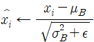 - normalize $\frac {z - E[\bar{X}_B]} {\sqrt{E[S_B^2]+\epsilon}} = \hat{z}$