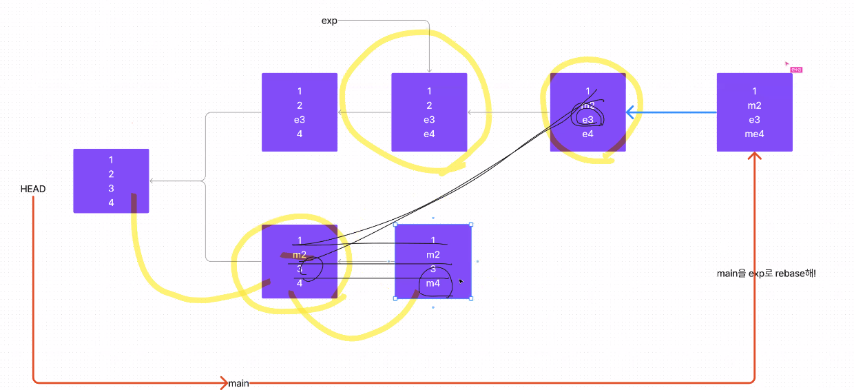 rebase는 merge 이후에 적용하는 것이 아니라 merge와 다른 결로 병합하는 방법임.