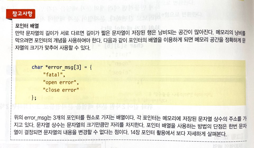 - 만약 문자 배열의 크기가 충분하지 않으면 컴파일러는 경고한다. 일부 문자는 저장되지 않으며 NULL 문자도 추가되지 않는다.