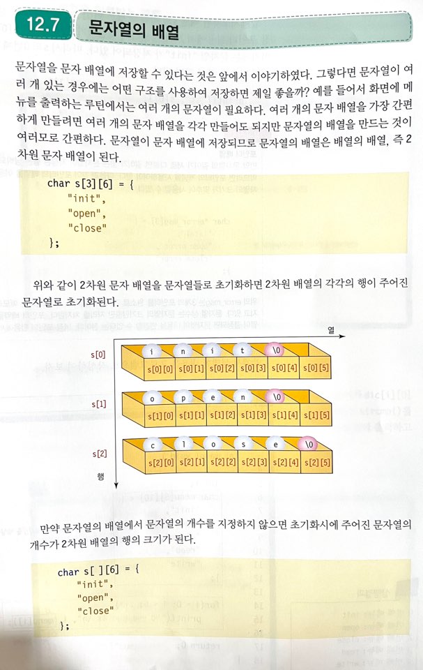 char str[] = "abc"; //배열의 크기는 4가 된다. char str[4] = "abcdef";- 배열 크기가 초기화 문자열보다 크다면 남는 공간은 모두 NULL 문자로 초기화됨.