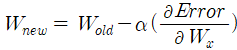 위는 기존 가중치 수정식. 아래가 모멘텀식으로 속도항이 추가된 가중치 수정식이다.