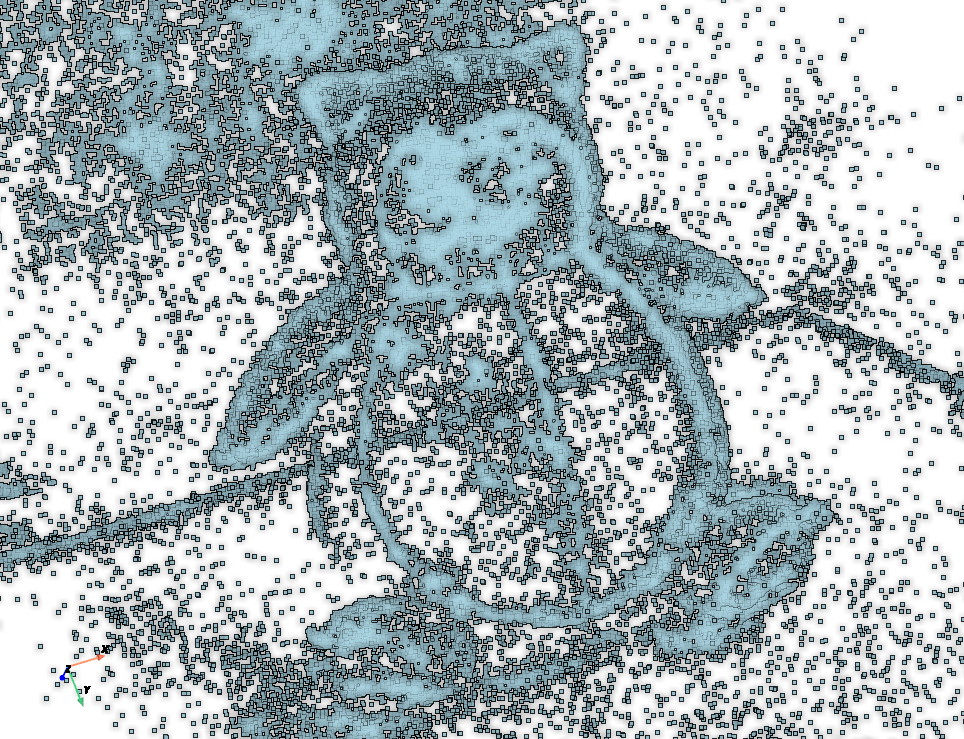 voxel_size의 단위는 m이고, 위 사진은 0.1m일 때의 point cloud(자율주행에서는 0.1, 0.2 많이 사용됨)