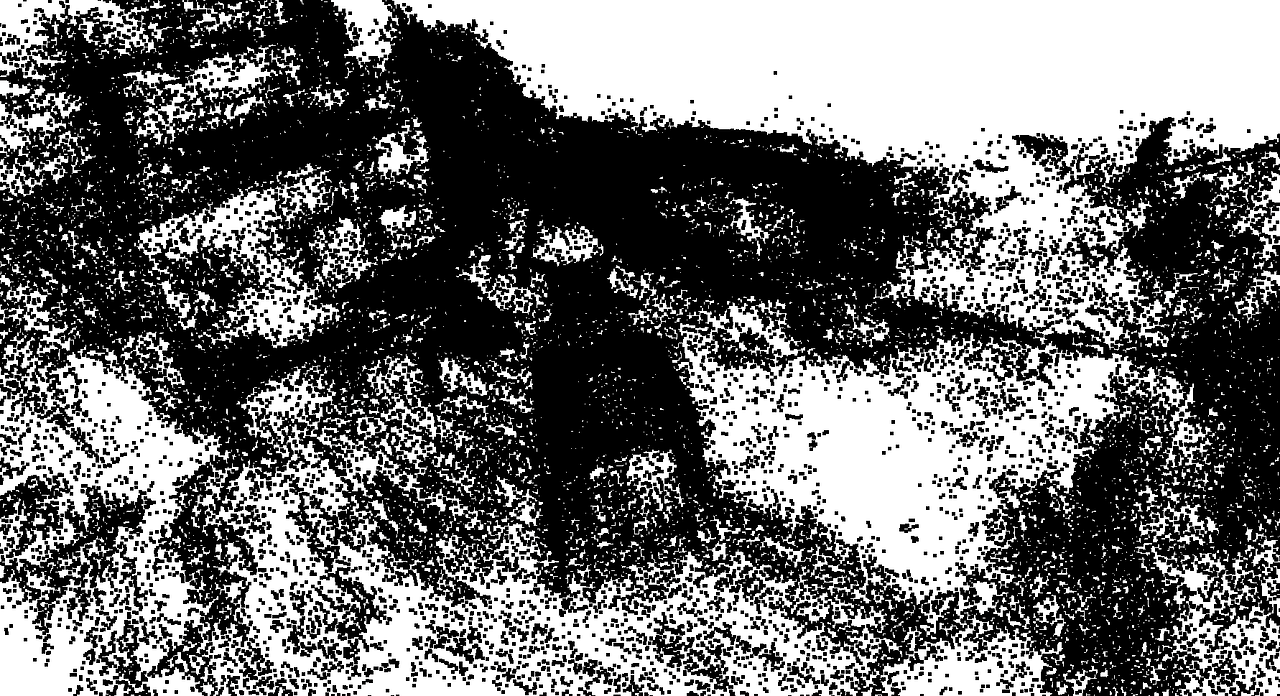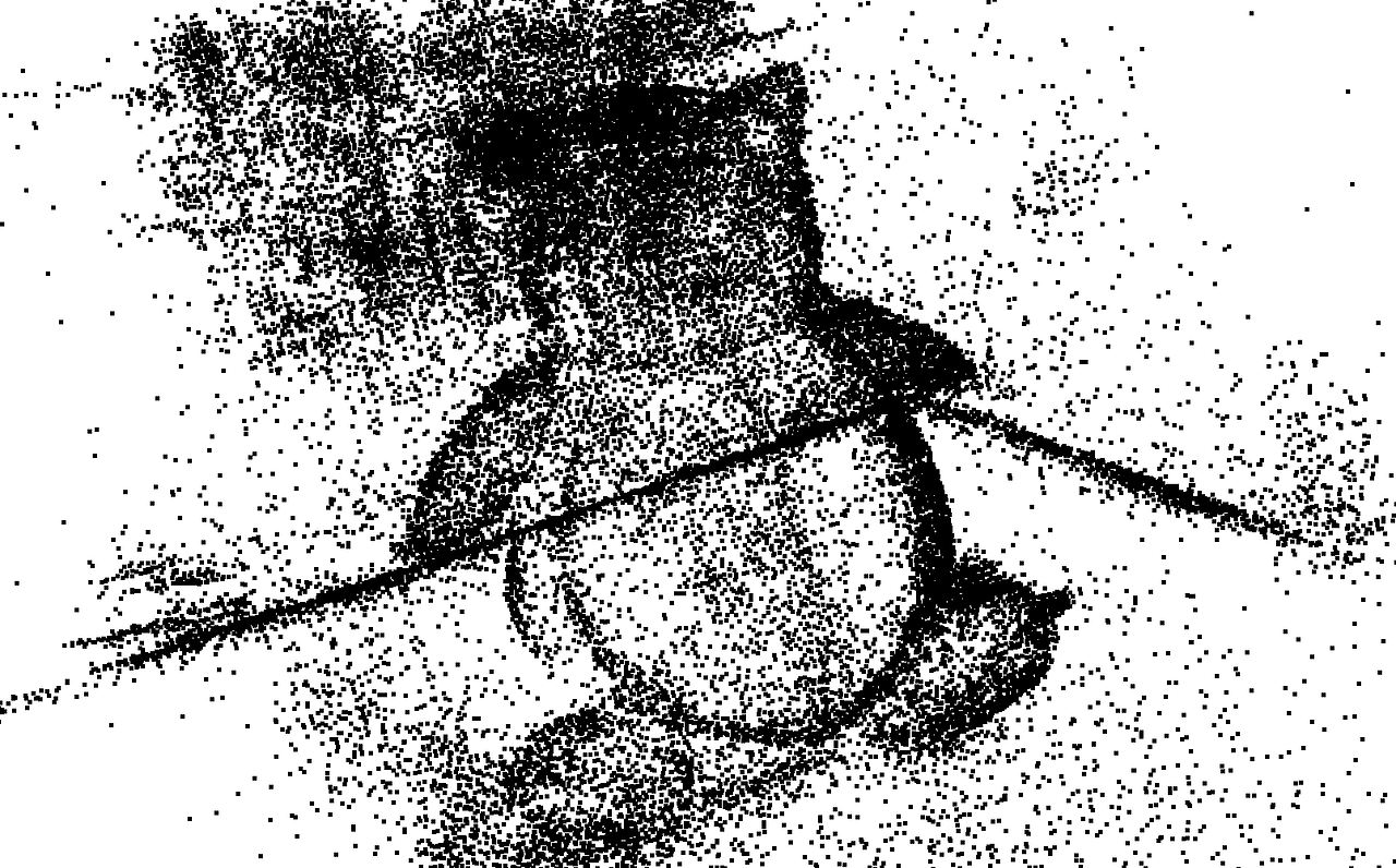 98500개의 points만 존재하고, mesh를 이루는 triangles는 전혀 없다.