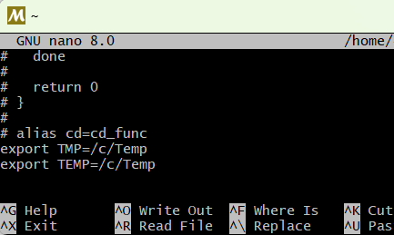 // nano 편집기로 bashrc 열기 nano ~/.bashrc