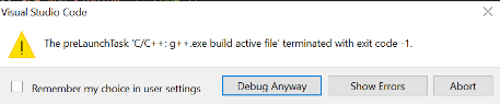 the prelaunchtask c/c++: gcc build active file terminated with exit code -1