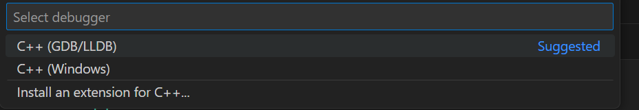 이제 코드로 돌아가서 디버깅해보자. F5를 누르면 아래와 같이 팝업이 생긴다. GDB/LLDB를 누른다.