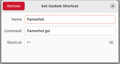 sudo apt-get install flameshot단축키 설정하는 법. F1 위치가 편해서 F1을 캡쳐 도구로 설정한다.