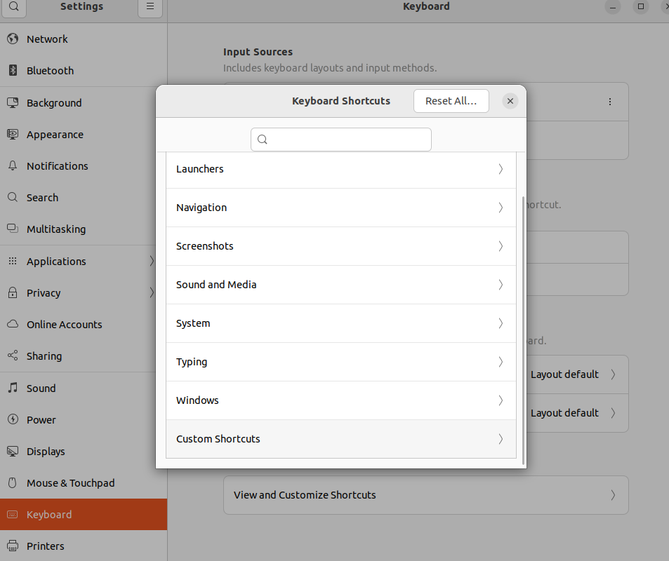 Settings - Keyboard - Keyboard Shortcuts - Custom Shortcuts 에서 아래와 같이 설정해준다.
