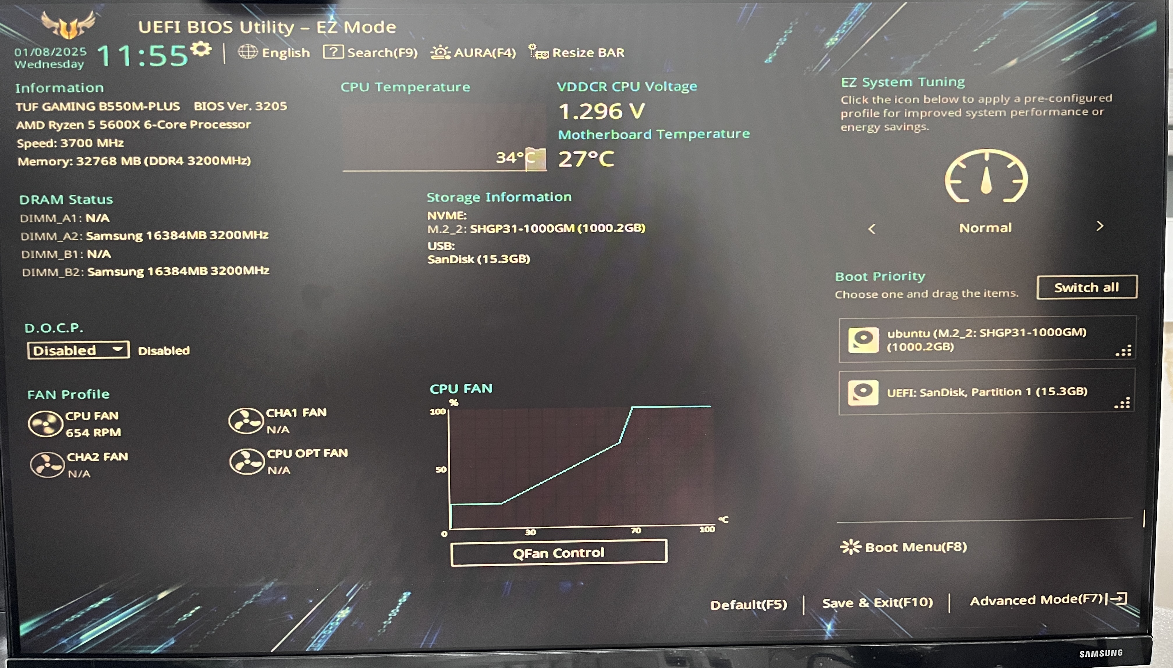 1. 재부팅시 F2 키를 연타해서 BIOS에 진입한다. (Esc, F12 등 메인보드에 따라 입력키가 다를 수 있다.)