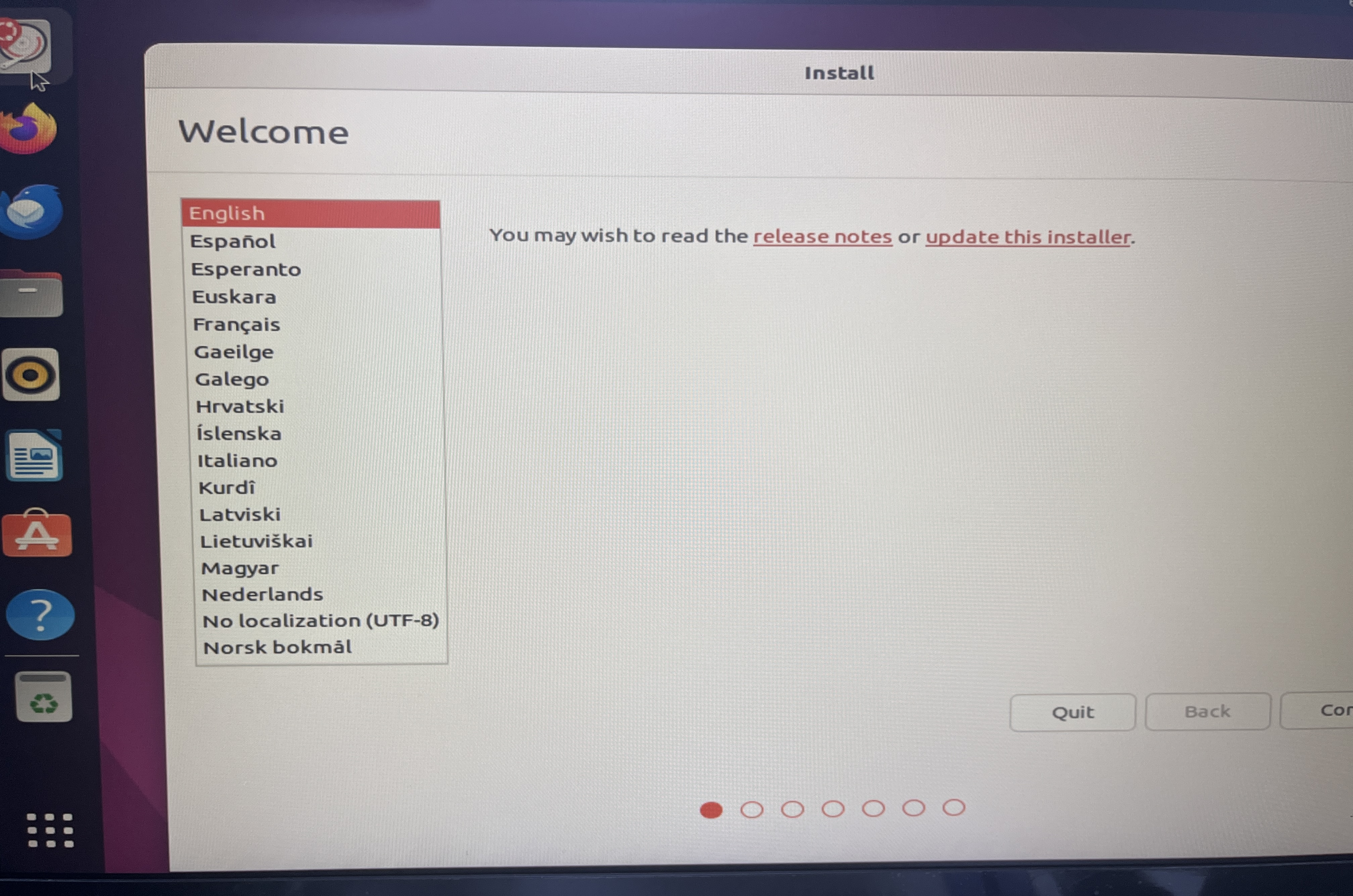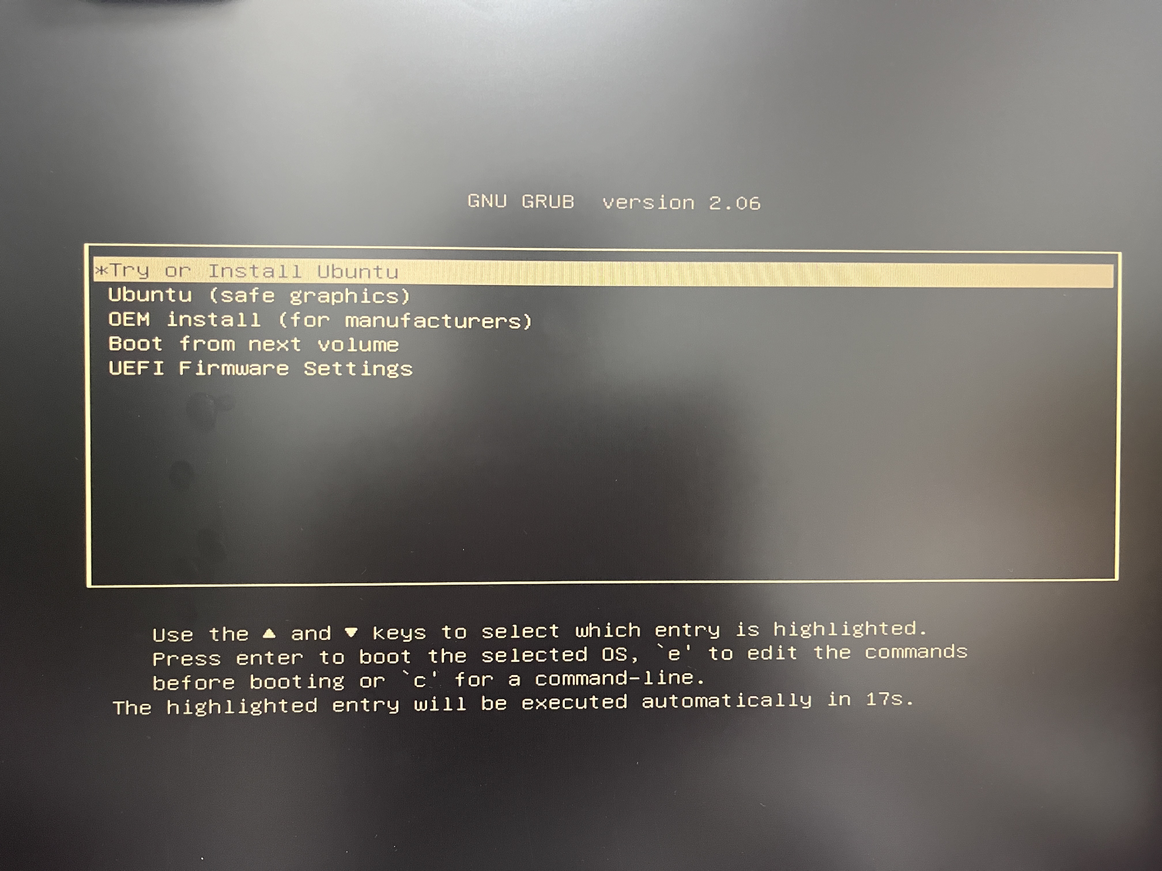3. 아래와 같이 USB로 진입하면서 Ubuntu 설치 화면이 뜬다.