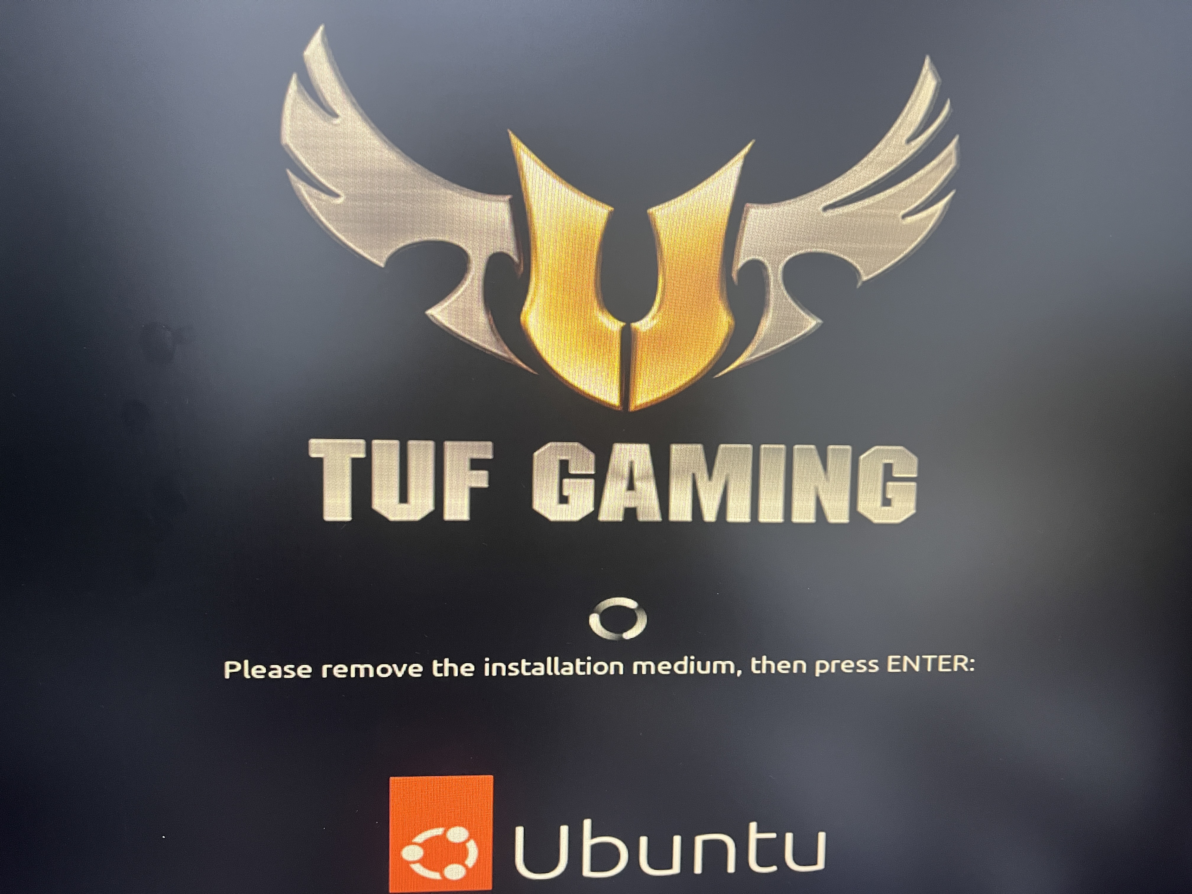 재부팅하라고 팝업이 뜬다. 아래와 같이 usb를 제거해주고 enter를 눌러서 재부팅해주면 ubuntu 설치 완료다.