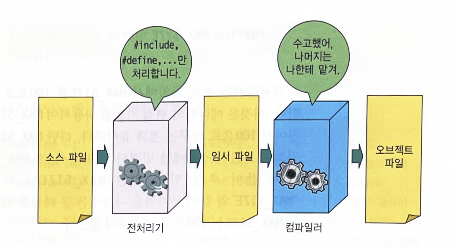 - 전처리기는 소스 파일을 처리하여 수정된 소스 파일을 생산한다.