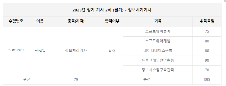 실기는 sql을 작성하는 문제와 C언어 포인터 문제, 그리고 자바에서 ==연산자와 equals메서드의 차이를 묻는 문제를 틀렸다. C언어와 자바 문제를 틀린 건 너무 아쉬웠다. 너무 쉽다며 의심없이 푼 것이 문제였다. 쉽다고 확신하지말고, 한 번 더 의심하자... sql문은 제대로 외우고 있질 않아서 틀렸다. 이 역시 너무 아쉽다. 비슷하게 적었지만 틀렸다.