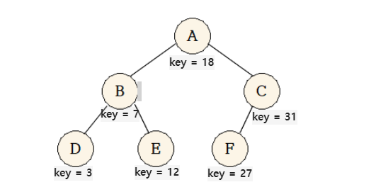 ● 왼쪽 서브트리의 키들은 루트의 키보다 작다.