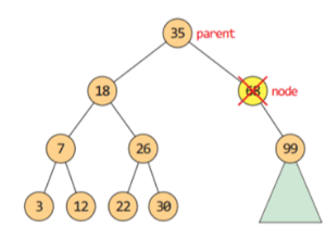 else : # 후계자가 오른쪽 자식이면(후계자가 왼쪽 자식을 가지고 있지 않은 경우)